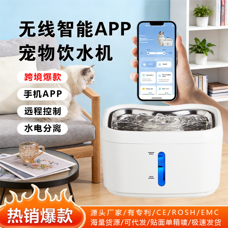Dispenser air hewan peliharaan pintar, dispenser air kucing lintas batas khusus untuk sirkulasi induksi otomatis air langsung filter nirkabel senyap