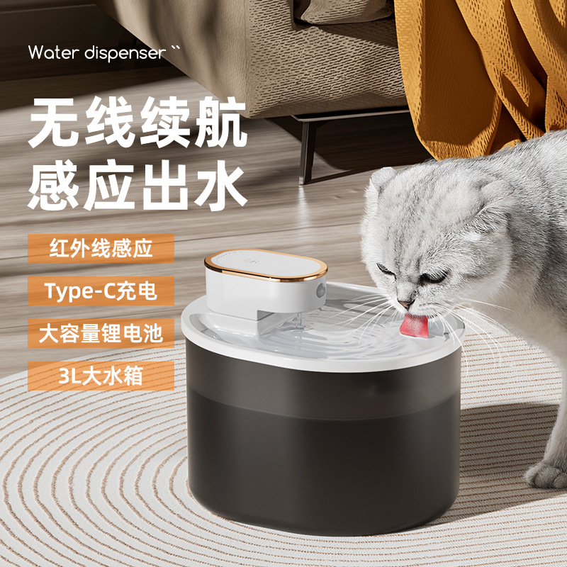 Dispenser air cerdas nirkabel, filter karbon aktif tidak berisik Induksi air kucing anjing a generasi 3L