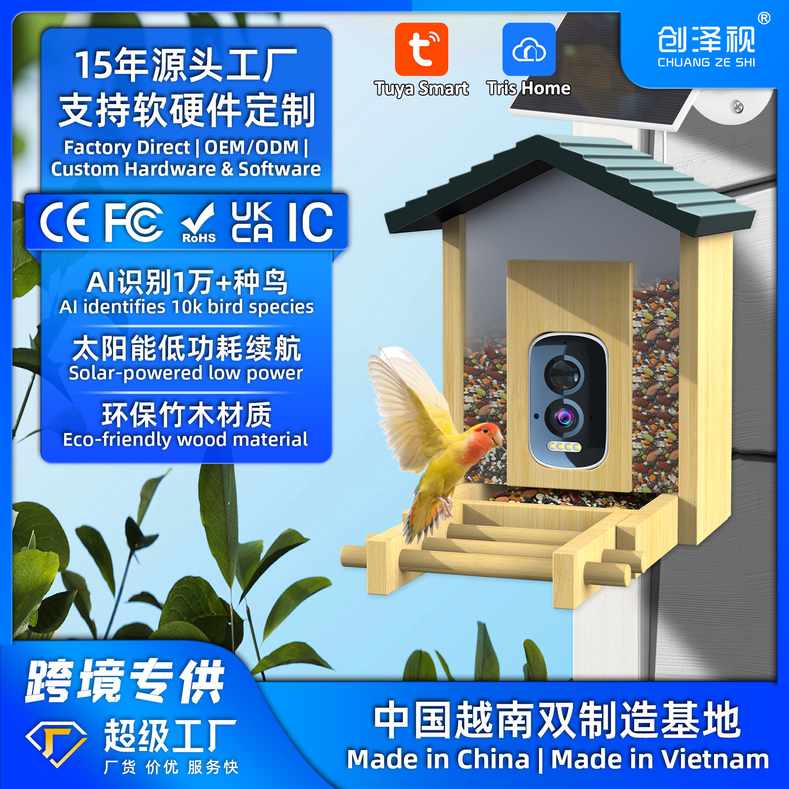 Sumber Pabrik Kayu Bambu Cerdas Pengumpan Burung AI Mengidentifikasi 5MP Tinggi Pixel Pengumpan Burung Perdagangan Luar Negeri Lintas Batas Model Ledakan