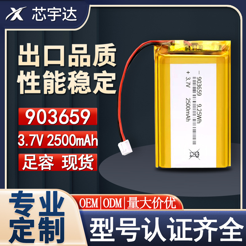 Baterai lithium polimer 903659 rumah pintar 3.7V baterai navigator walkie-talkie kapasitas besar 2500mAh
