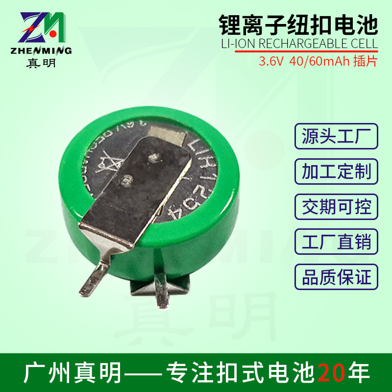 Zhenming LIR2050 baterai tombol ion lithium isi ulang 3. Baterai pengendali jarak jauh 6v80mah dengan kaki las