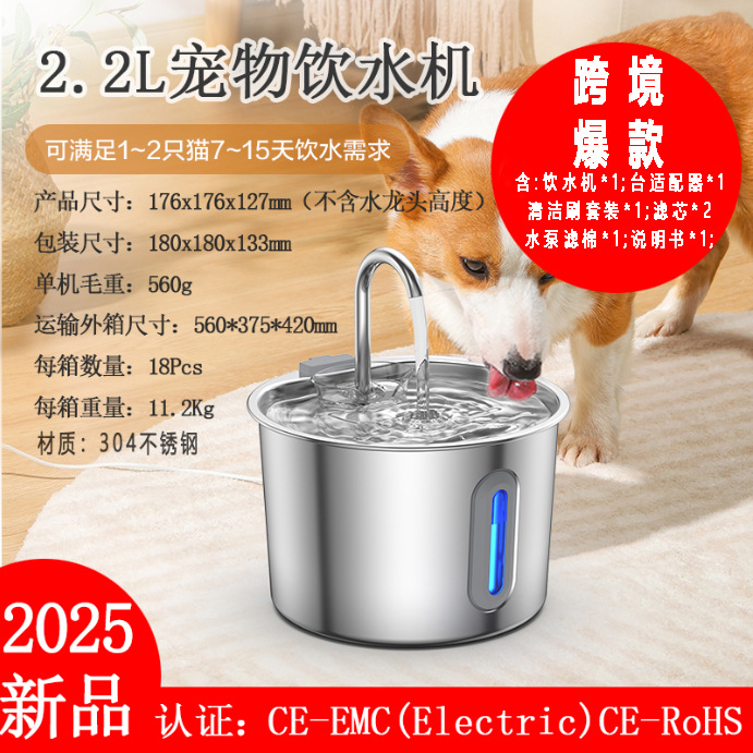 Dispenser air hewan peliharaan baru lintas batas 304 dispenser air kucing air mengalir anjing otomatis dengan keran stainless steel