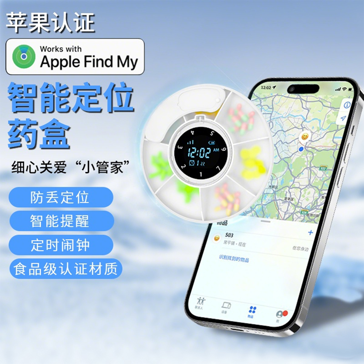 Kotak Obat Cerdas Tipe Jam Alarm Portabel Bersertifikat FindMy