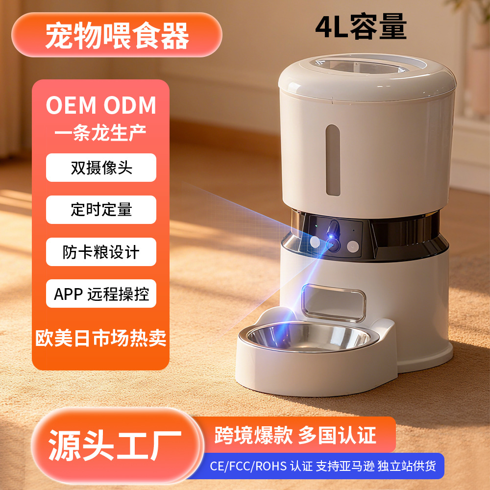 Pemberi makan hewan peliharaan lintas batas dengan dosis otomatis, kapasitas besar 4L, pemberian makan pintar elektrik untuk kucing dan anjing, kustomisasi pabrik.