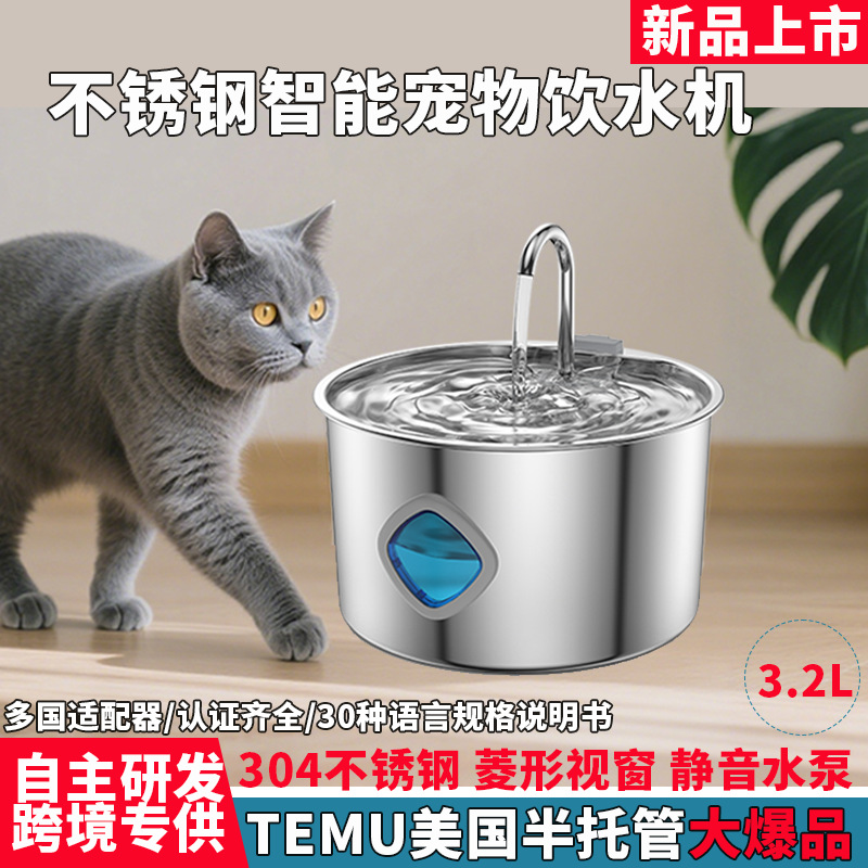 Amazon Hewan Peliharaan Dispenser Air Minum Stainless Steel Smart Cat Fountain Feeder Otomatis Cat Air Minum Produk Hewan Peliharaan Produsen