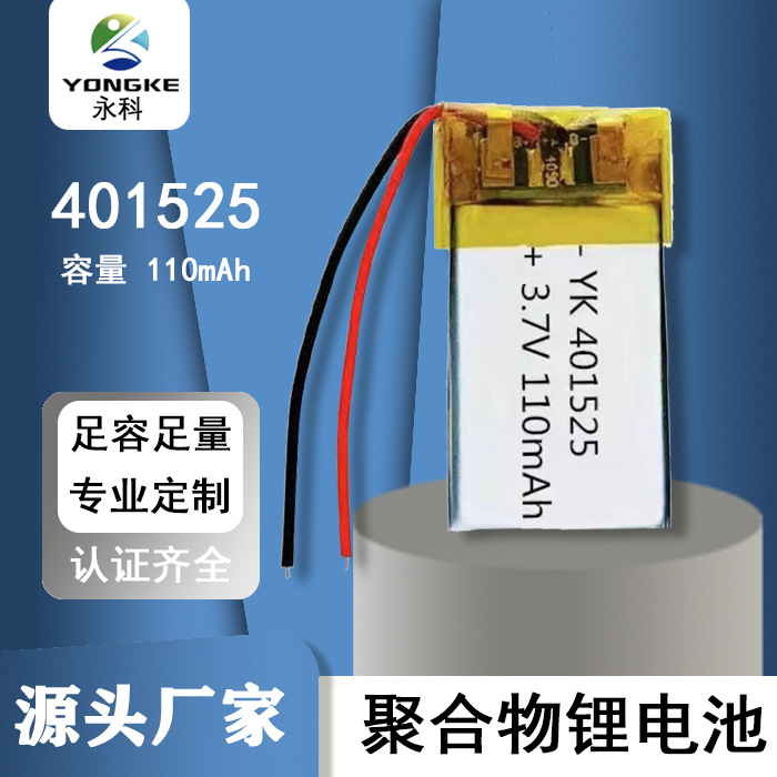 401525 baterai lithium polimer 110mAh lampu luar ruangan mikrofon perekam berkendara sertifikasi baterai lengkap