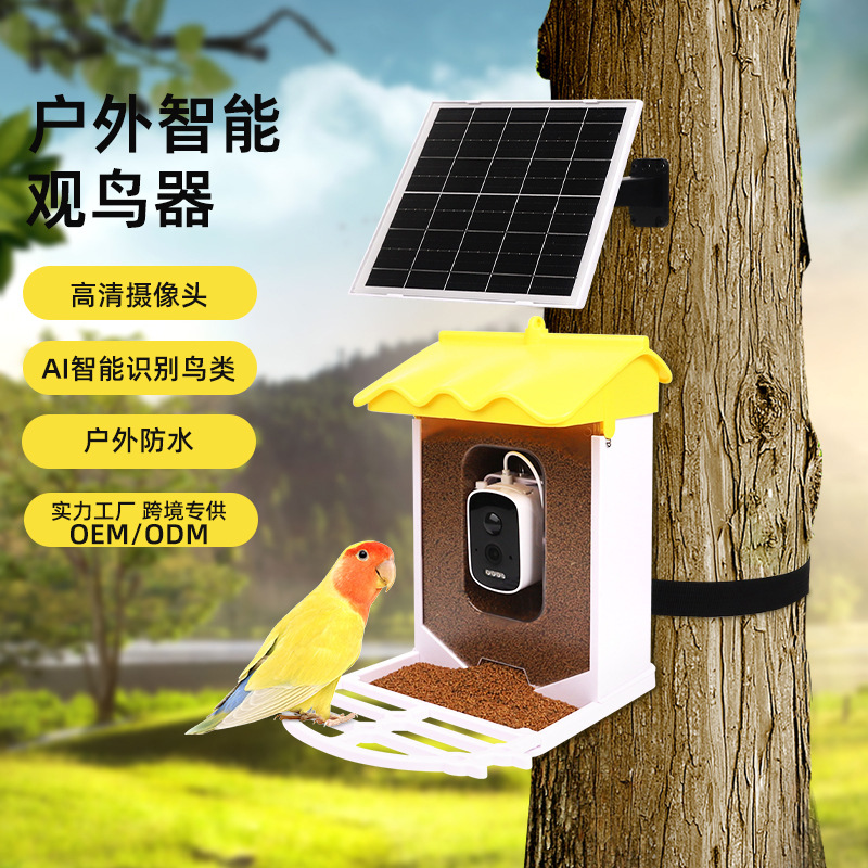 Pengumpan Burung Cerdas Model Ledek Lintas Batas Luar Ruangan Tahan Air Pengumpan Surya Kustom AI Identifikasi Alat Menonton Burung