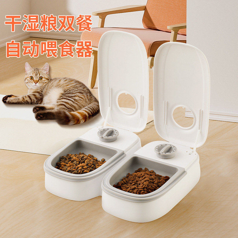 Mangkuk peliharaan cerdas waktu pengumpan kucing, makanan basah dan kering kuantitatif makanan ganda makanan rumah tangga terpisah anjing makanan otomatis
