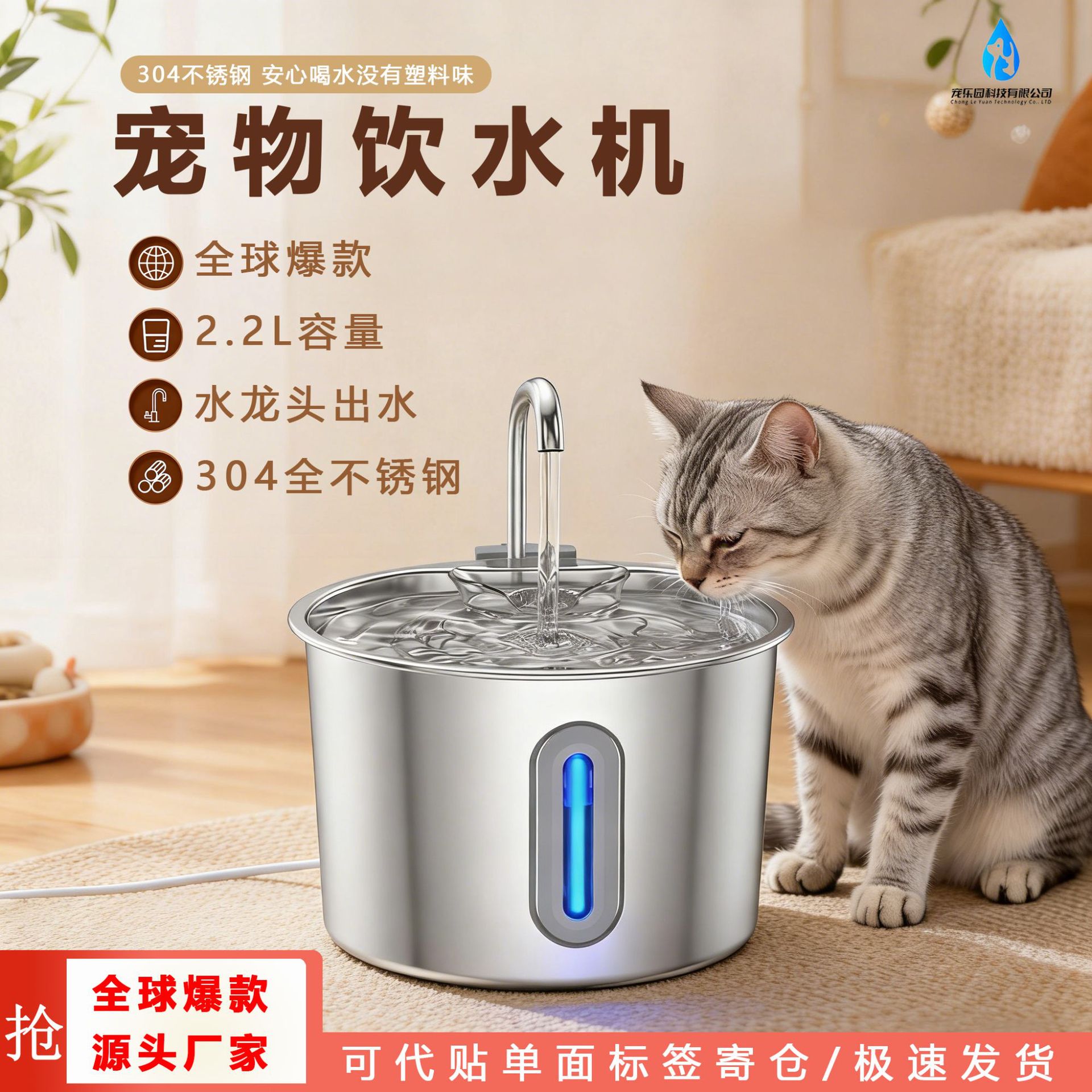 Dispenser air hewan peliharaan baru lintas batas 304 dispenser air kucing air mengalir anjing otomatis dengan keran stainless steel