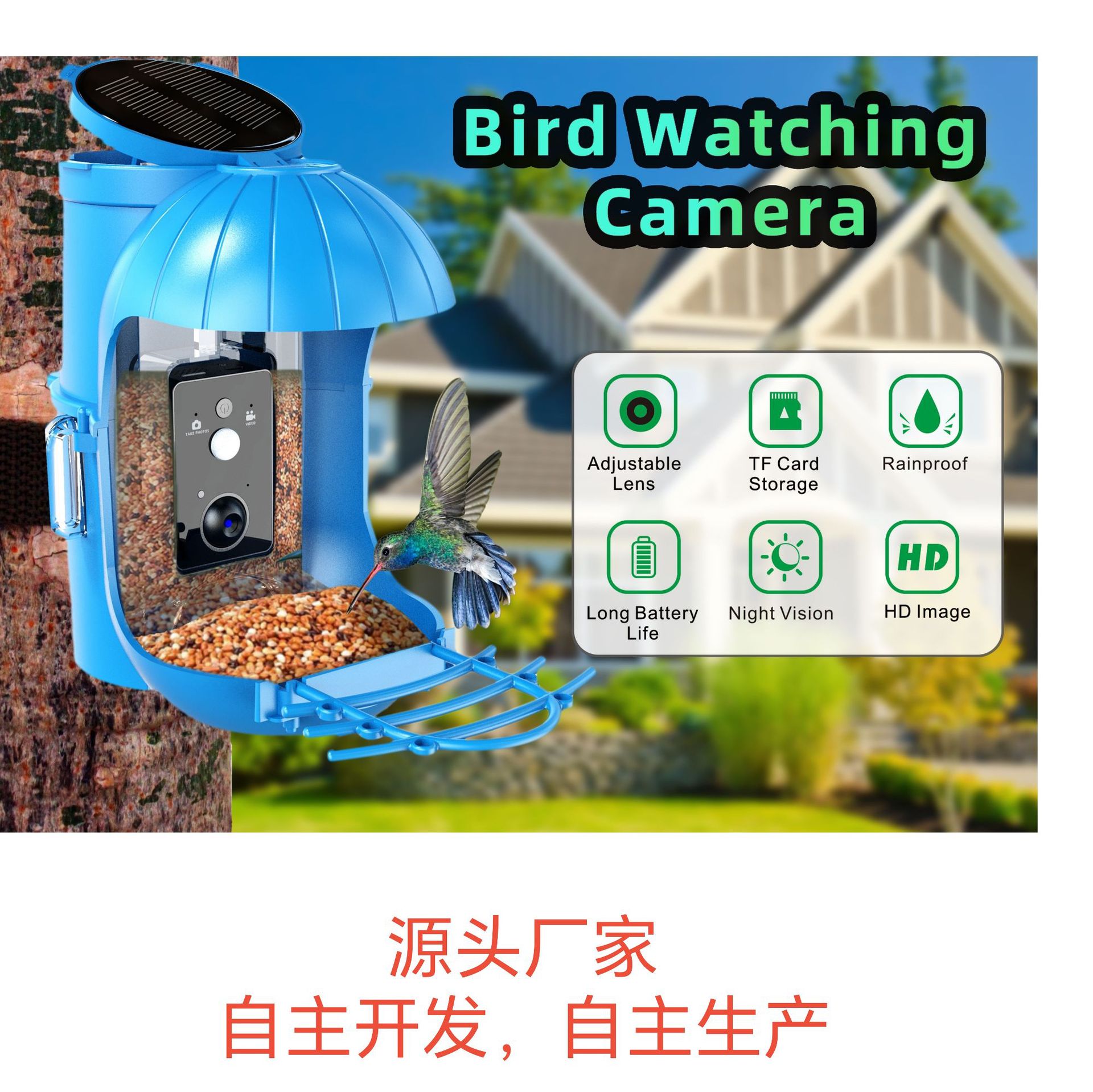Beli produsen lintas batas kamera pemberi makan burung pintar pengisian tenaga surya HD baru
