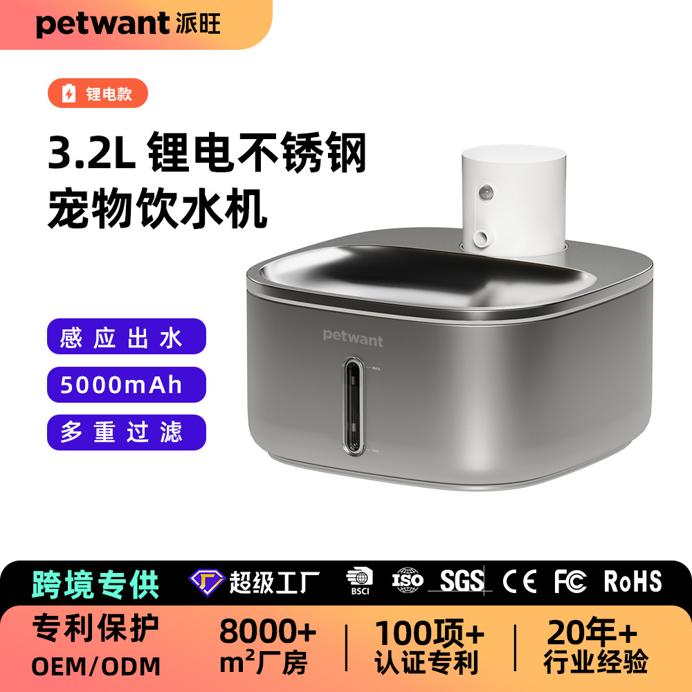 Dispenser air hewan peliharaan nirkabel besi tahan karat 3,2l paiwang grosir lintas batas 5000mA daya tahan Super induksi makanan air inframerah