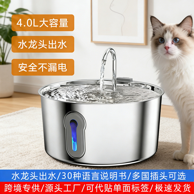 Dispenser sirkulasi air hewan peliharaan stainless steel Amazon 304 lintas batas filter sirkulasi pemberi makan air kucing produsen minuman anjing