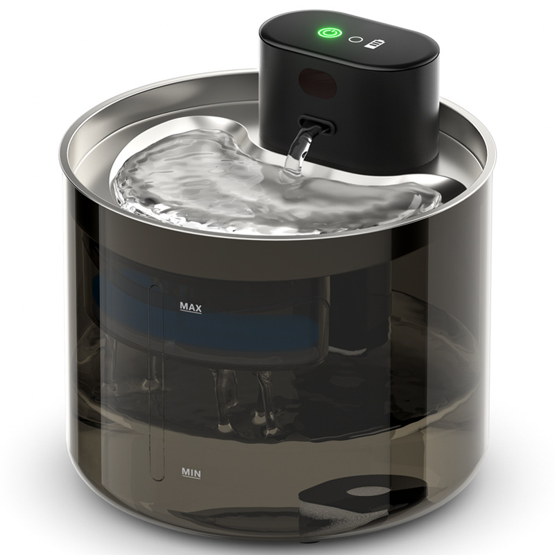 Dispenser air hewan peliharaan 304 stainless steel bulat transparan jendela air minum kucing air minum otomatis persediaan air hidup cerdas