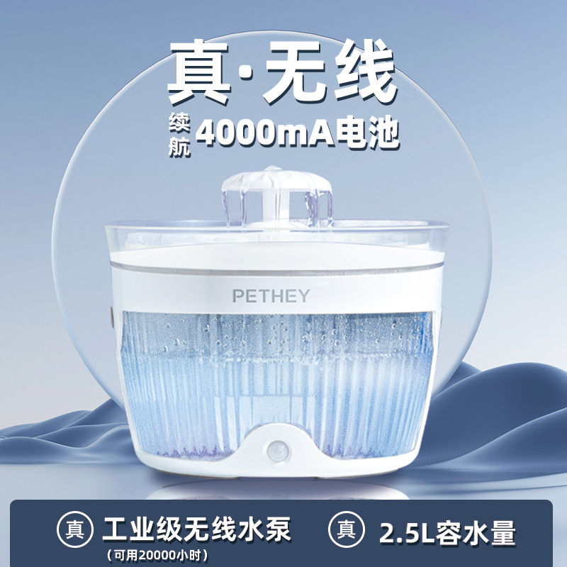 Dispenser air kucing nirkabel lintas batas, dispenser air kucing nirkabel isi ulang daya ultra-panjang, dispenser air induksi cerdas