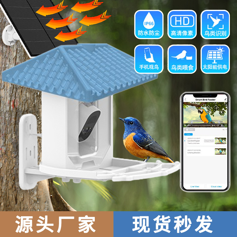 Tempat makan burung tahan air untuk luar ruangan dengan tenaga surya, kamera HD 2.5K, identifikasi burung AI, dan pemantauan cerdas.