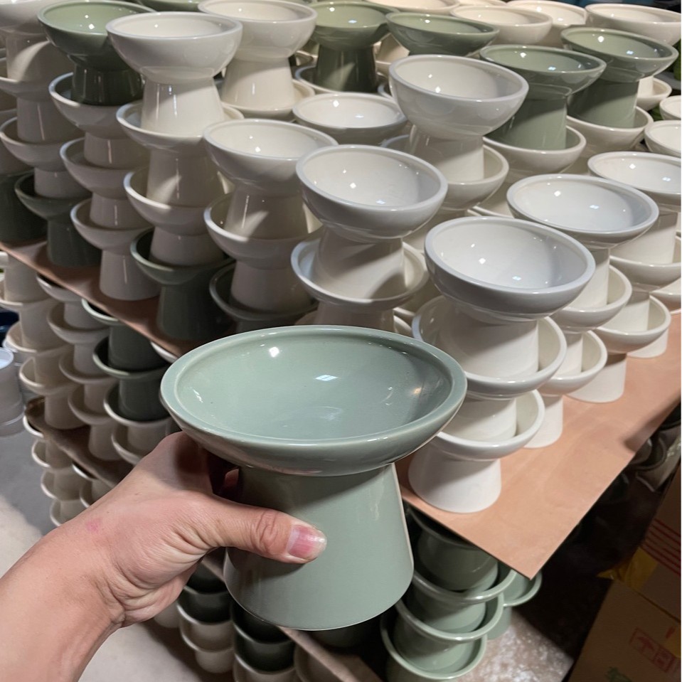 Mangkuk kucing keramik lintas batas mangkuk pelindung tulang belakang kucing mangkuk makanan kucing mangkuk nasi mangkuk air anjing perlengkapan hewan peliharaan anti-benturan