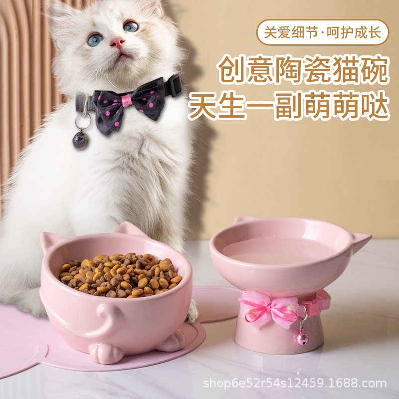 Mangkuk Kucing Keramik Mangkuk Makanan Anjing Mangkuk Ganda Mulut Miring Kaki Tinggi Mangkuk Air Anti Baling-flip Produk Hewan Peliharaan Satu Potong Rambut Generasi Grosir