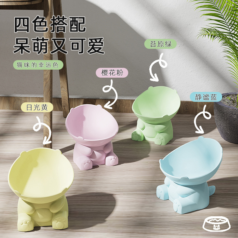 Produk Hewan Peliharaan Mangkuk Kucing Anti Balikkan Mangkuk Makanan Kucing Dinosaurus Mangkuk Pelindung Leher Mangkuk Hewan Peliharaan Kaki Tinggi Mangkuk Kucing Baskom Anjing