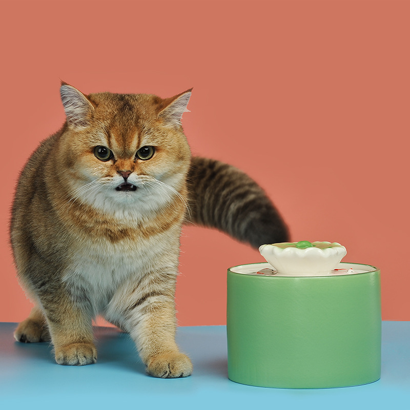 Dispenser air otomatis daun lotus kreatif, batch mangkuk minum makan hewan peliharaan keramik suhu konstan sirkulasi otomatis