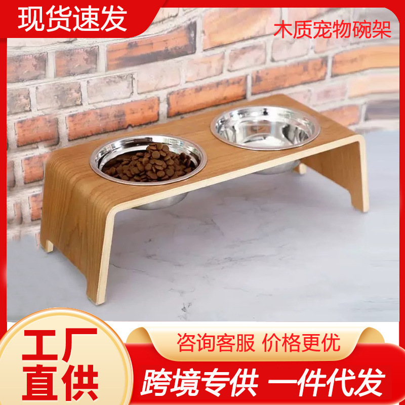 Cross mangkuk hewan peliharaan pelindung tulang belakang serviks dengan rak mangkuk minum Keramik mangkuk anjing kucing mangkuk terintegrasi rak kayu ganda