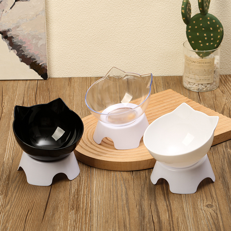 Mangkuk Kucing Grosir Mangkuk Hewan Peliharaan Anjing dan Kucing Leher Tinggi Anti-selip Mulut Miring Air Minum Mangkuk Makan Kucing Mangkuk Air Makan Mangkuk Ganda
