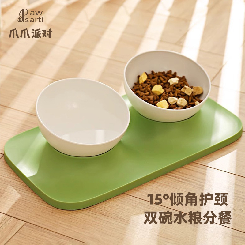 Fashion ekspor mangkuk hewan peliharaan bermerek perlengkapan kucing piring makanan kucing mangkuk kucing perlindungan leher mangkuk anjing perlengkapan anjing kecil