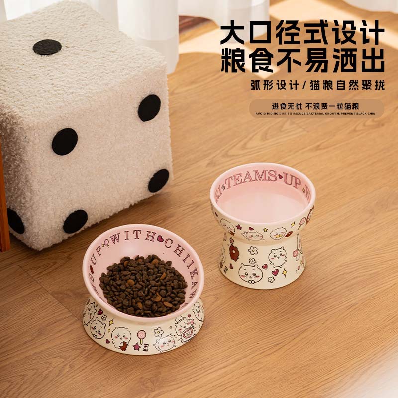 Mangkuk kucing dan anjing keramik tinggi, mangkuk makanan hewan peliharaan yang melindungi leher dan anti tumpah, mangkuk makanan kucing, khusus untuk penjualan lintas batas.