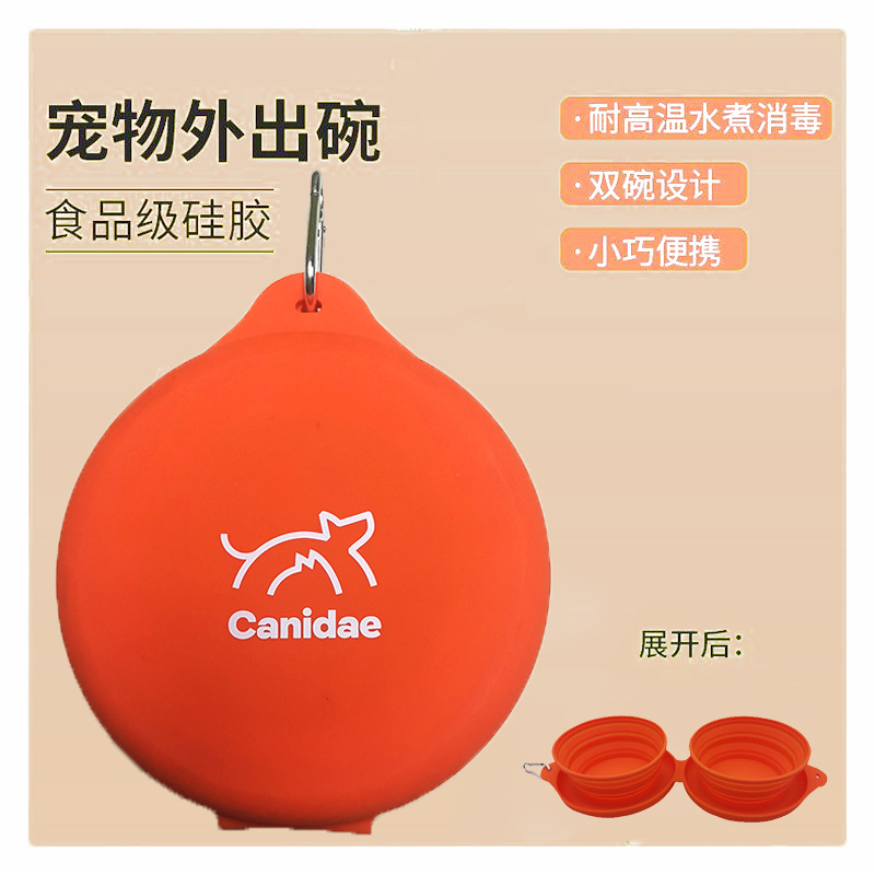 Pabrik langsung hewan peliharaan portabel perjalanan keluar mangkuk ganda lipat silikon mangkuk anjing kucing mangkuk luar ruangan hewan peliharaan ganda mangkuk