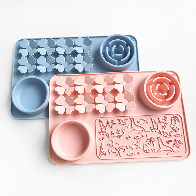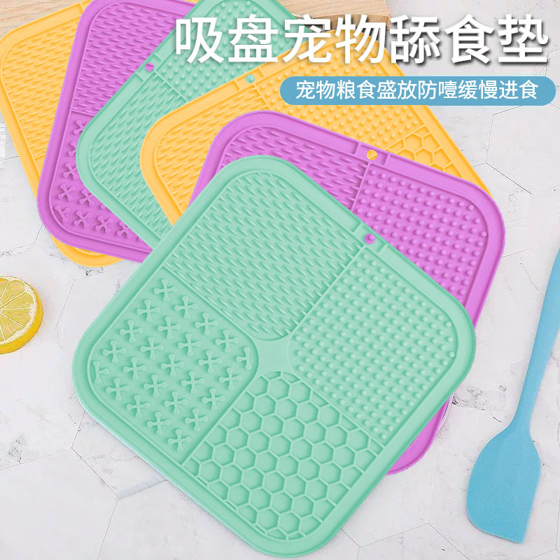 Silikon Empat kisi Bantalan Makanan Lambat dengan Pengisap Rumah Tangga Bantalan Jililikon Bantalan Makanan Lambat Hewan Peliharaan Anjing Makan Lambat
