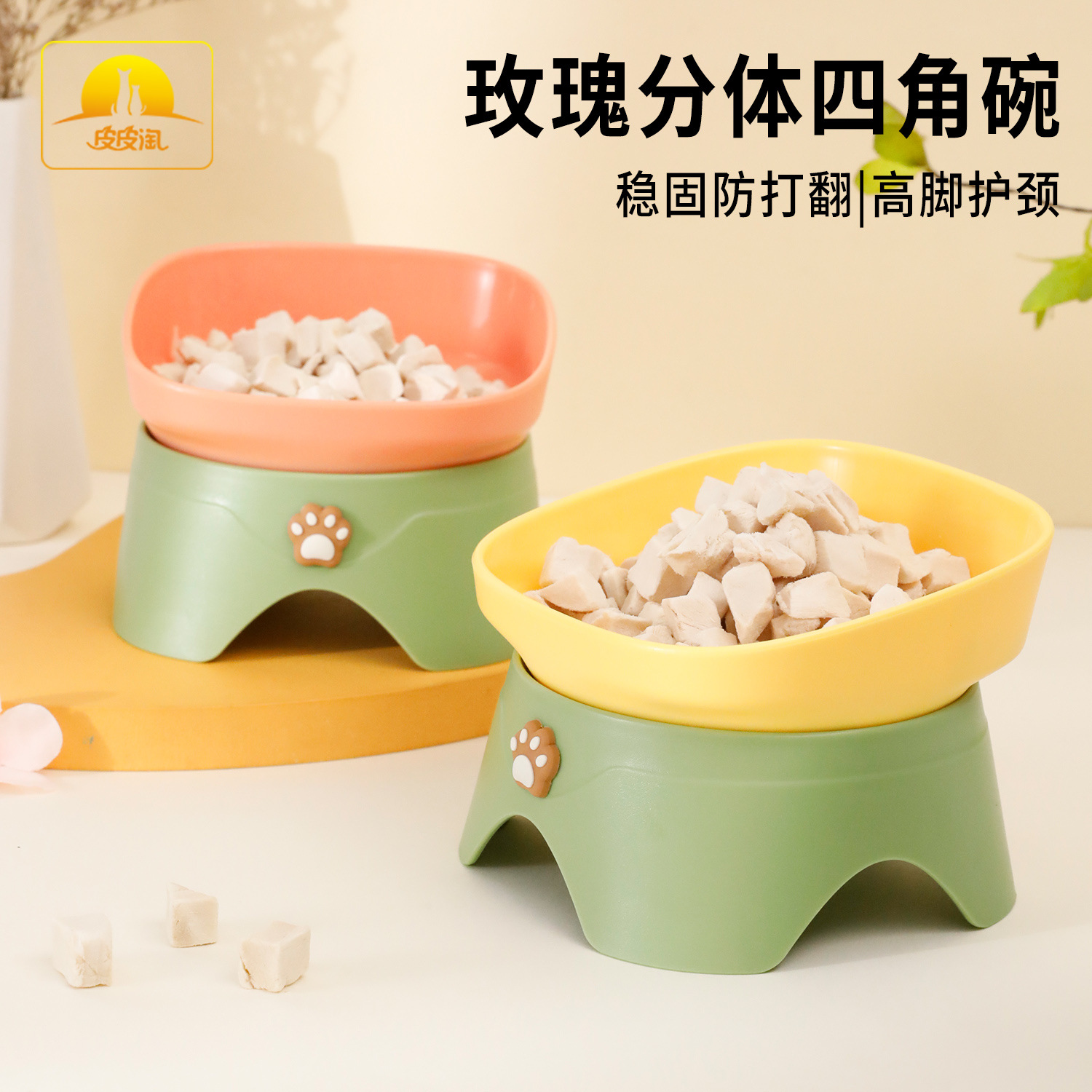 Mangkuk kucing plastik mangkuk makanan kucing mangkuk nasi kucing miring antibenturan mangkuk minum hewan peliharaan pabrik grosir