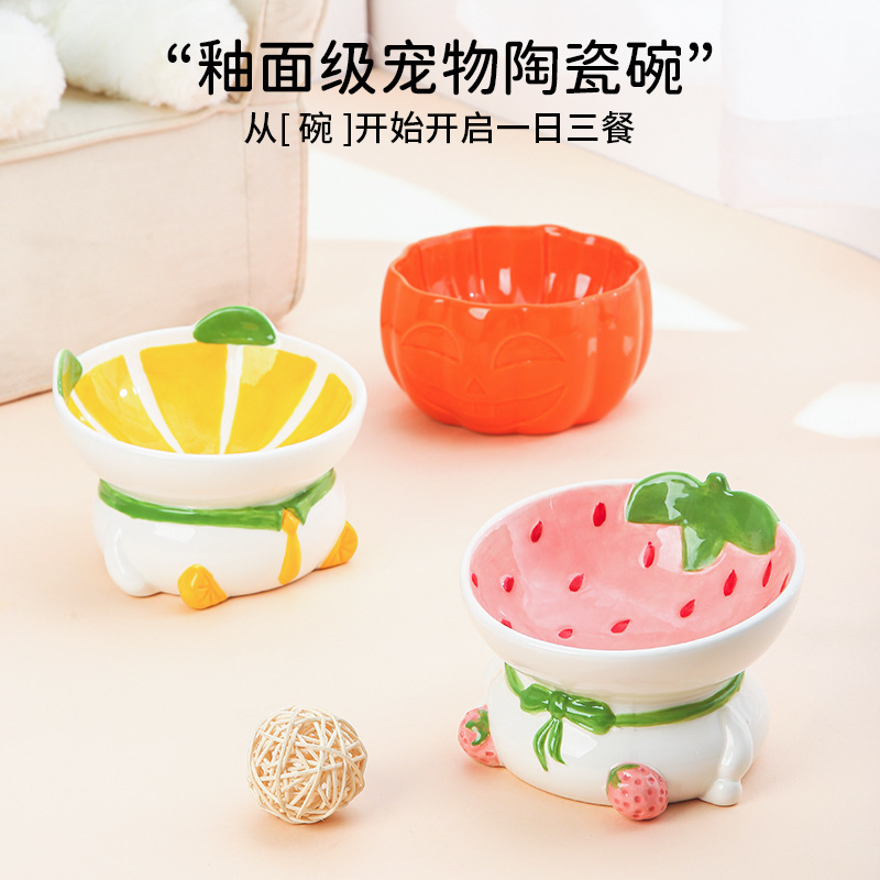 Amazon mangkuk kucing keramik baskom kucing mangkuk makanan perlindungan leher perlindungan mulut miring tulang belakang serviks minum anjing mangkuk perlengkapan hewan peliharaan kaki tinggi