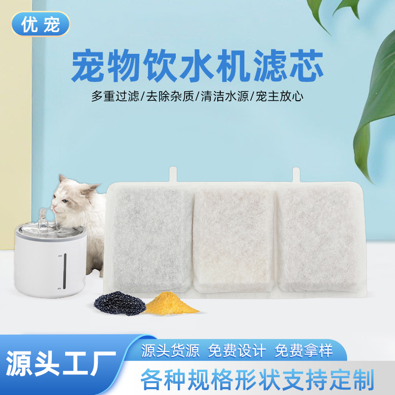 Filter inti dispenser air hewan peliharaan, filter persegi tiga kisi, kotoran air karbon aktif, elemen filter pengganti dispenser air