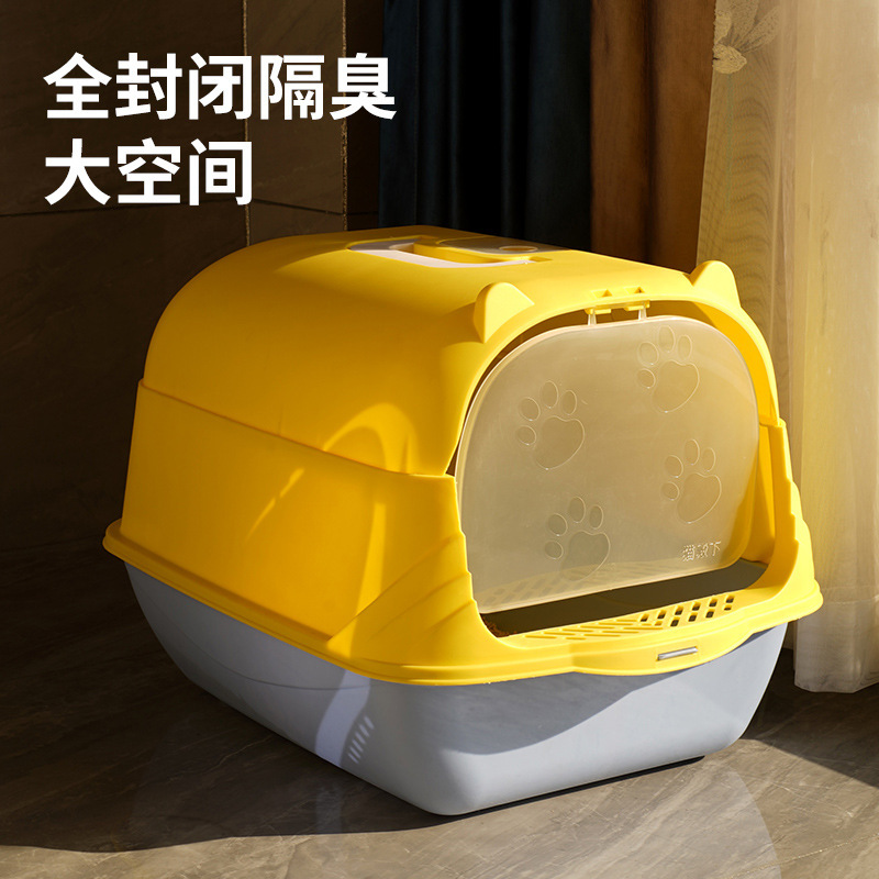 Kotak sampah kucing peliharaan toilet kucing toilet toilet kucing besar toilet tertutup penuh deodoran antipercikan kotak sampah kucing baskom