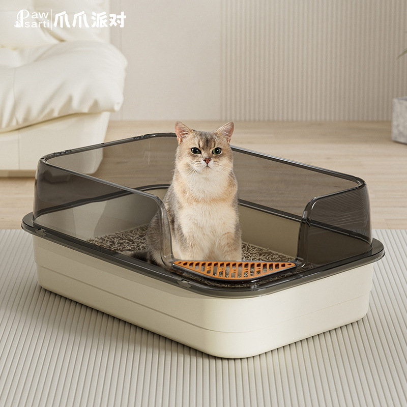 Baskom Kotoran Kucing Ukuran Super Besar Anti Tercebur Toilet Kucing Terbuka Penuh Baskom Kotoran Kucing Setengah Tertutup Produk Hewan Peliharaan Baskom Pasir Kucing