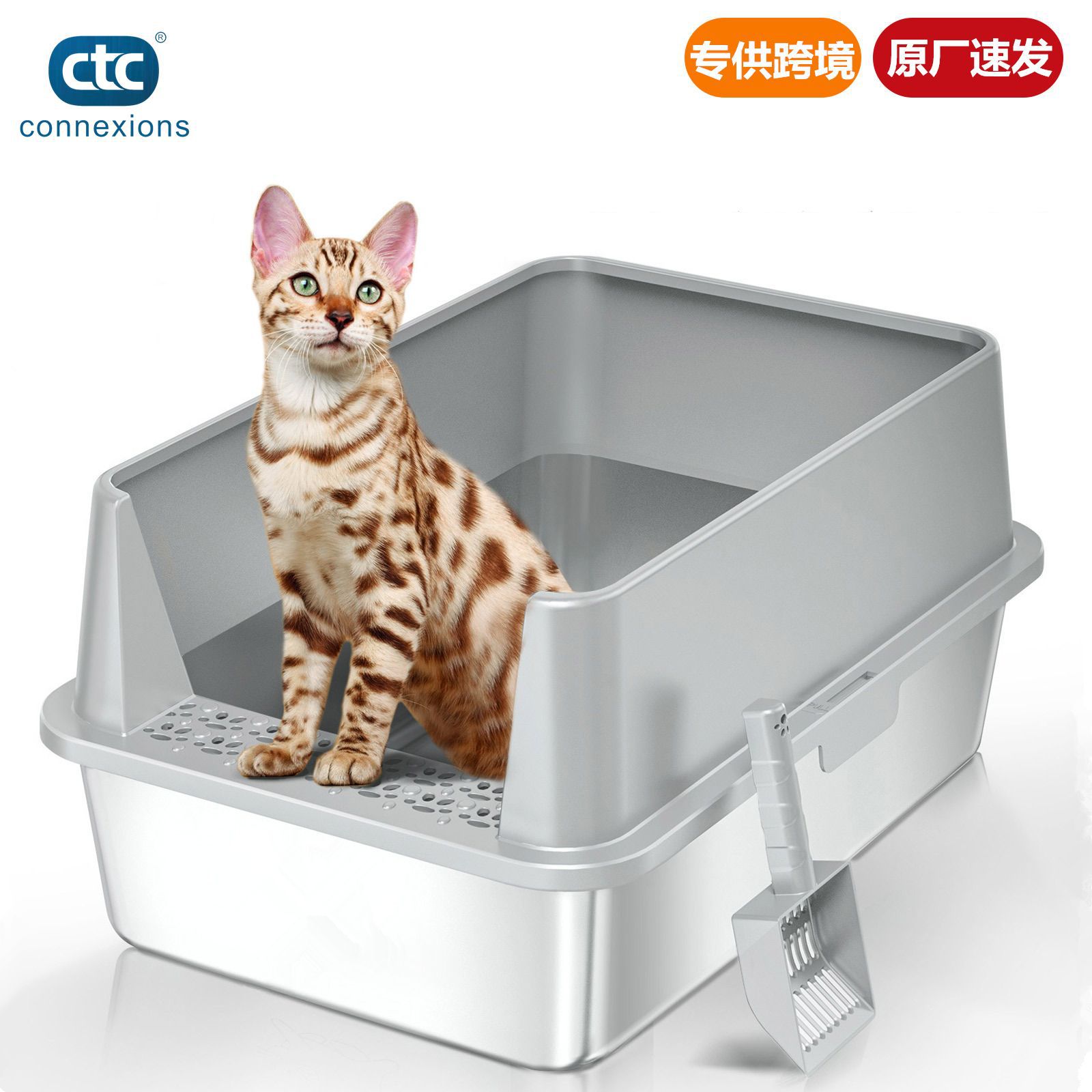 批发不锈钢猫砂盆超大号加宽加厚防漏砂易清洗开放式猫厕所防外溅