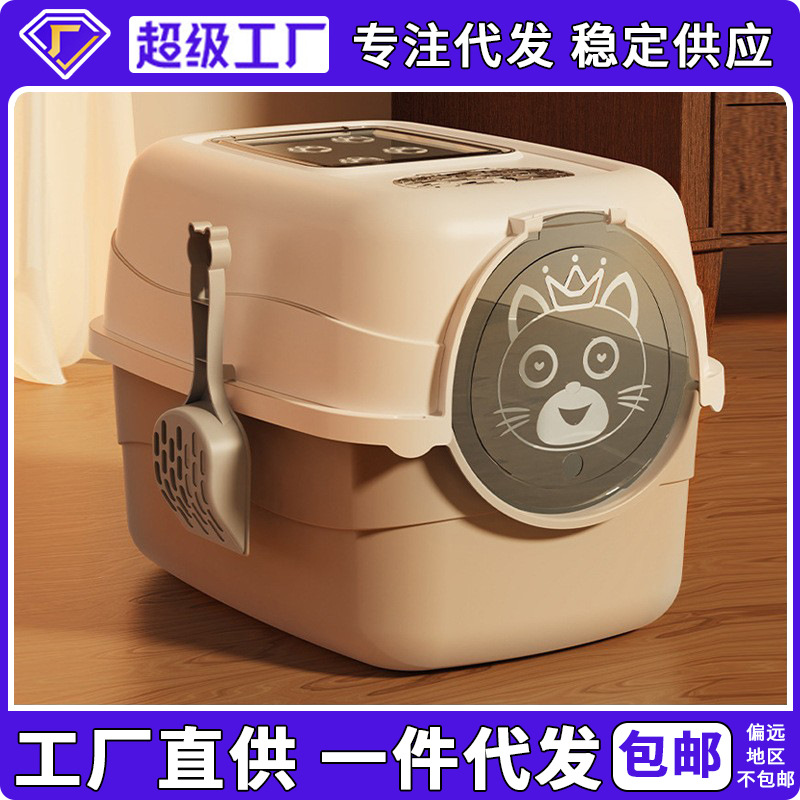 Kotak kotoran kucing ukuran besar tertutup penuh, deodoran cipratan toilet kucing atasan adalah kotak sampah kucing grosir tersedia