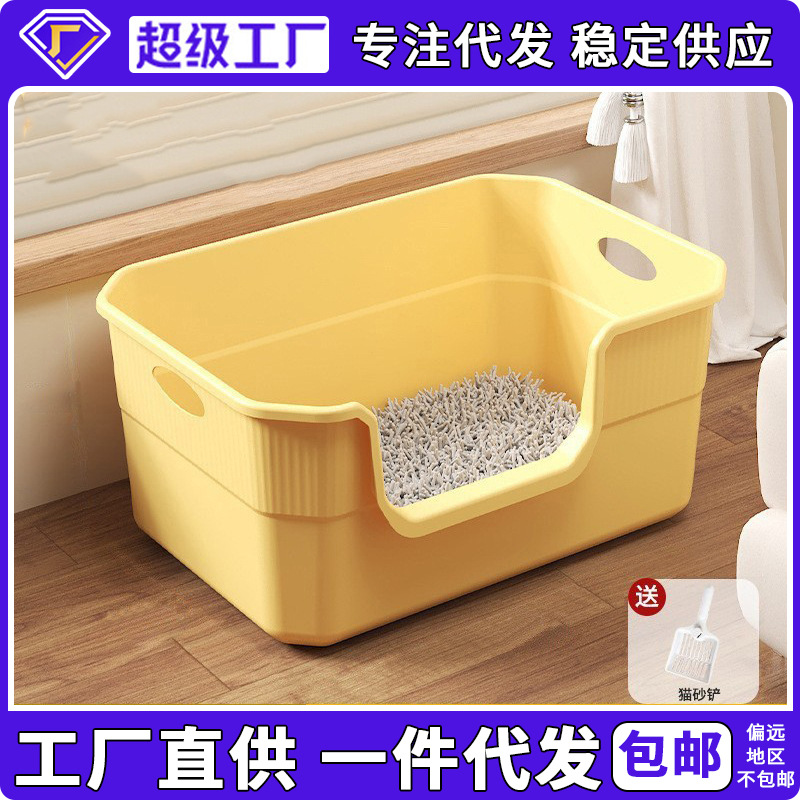 Kotak kotoran kucing grosir ukuran super tebal setengah tertutup anti percikan kucing muda toilet rumah tangga kotak kotoran kucing model baru