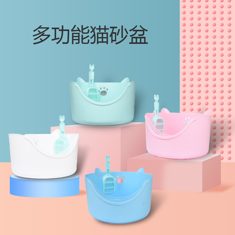Kotak kotoran kucing semi tertutup pp sederhana antipercikan tepi tinggi perlengkapan hewan peliharaan toilet kucing pabrik dalam stok