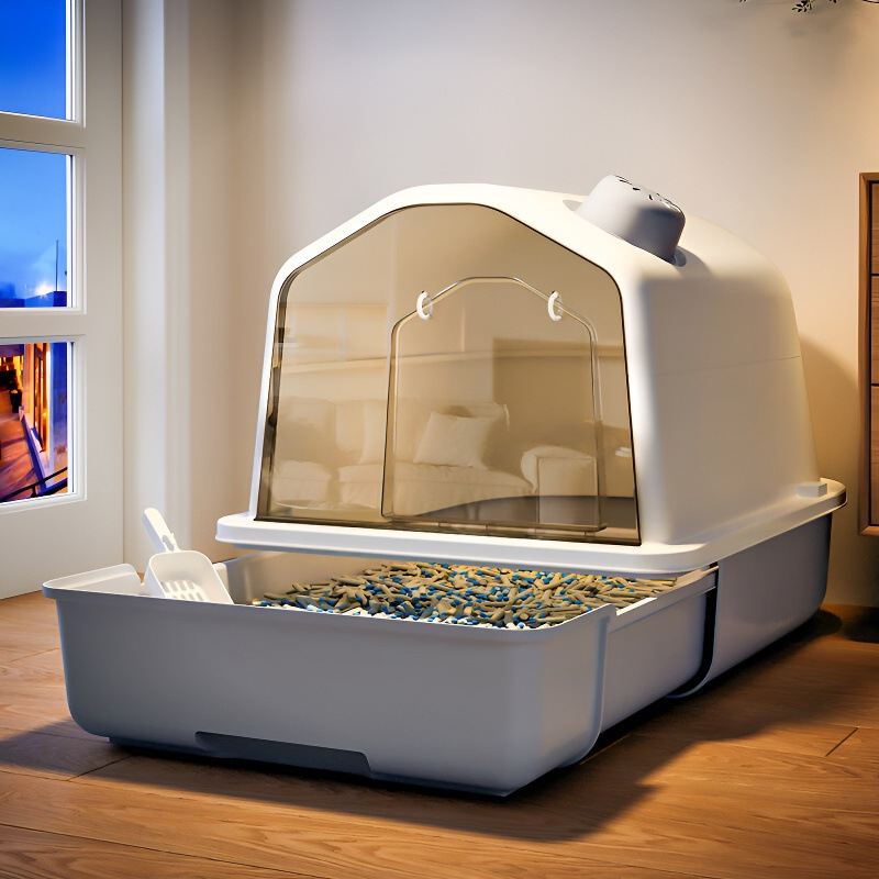 Baskom Kotoran Kucing Ukuran Super Besar Semua Tertutup Toilet Kucing Ukuran Super Besar Anti Pasir