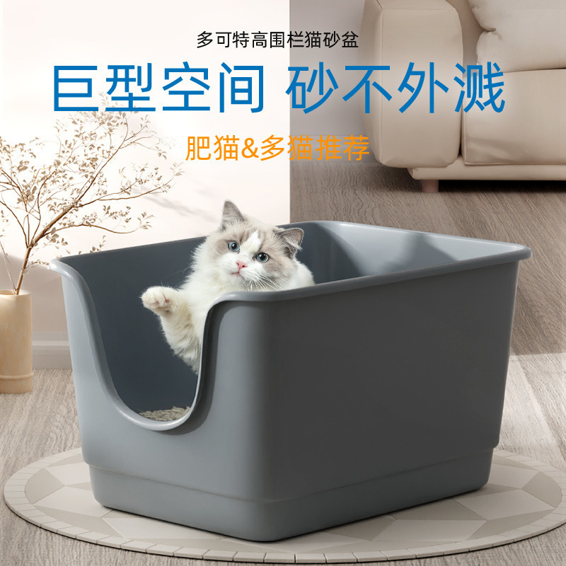 Docote Baskom Kotoran Kucing Semi Tertutup Ukuran Besar Anti Tercebur Luar Baskom Kotoran Kucing Terbuka Penuh Pagar Tinggi Toilet Kucing Anti Kotoran