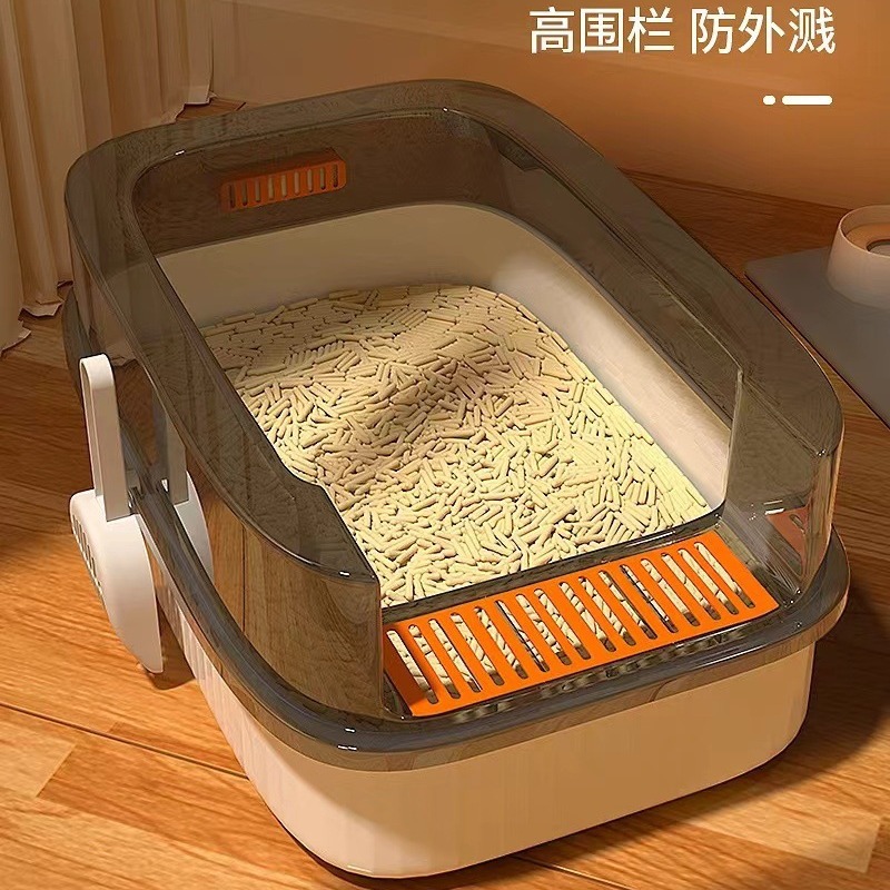 Kotak sampah kucing semi-tertutup, kotak sampah kucing ukuran besar, toilet kucing cipratan batas tinggi, kotak sampah kucing ukuran besar