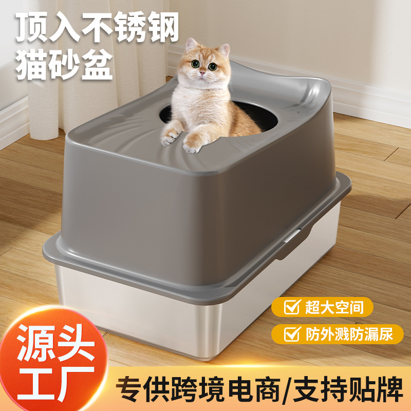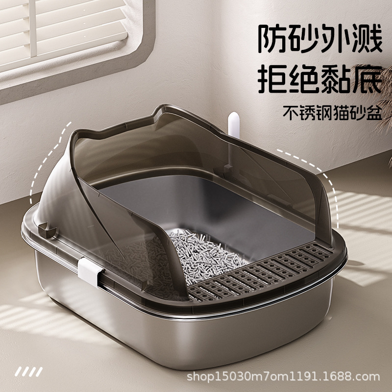 Baskom Kotoran Kucing Stainless Steel Ukuran Besar Anti Tercebur Luar Buka Baskom Pasir Kucing Ukuran Besar Baskom Kotoran Kucing Ukuran Besar Toilet