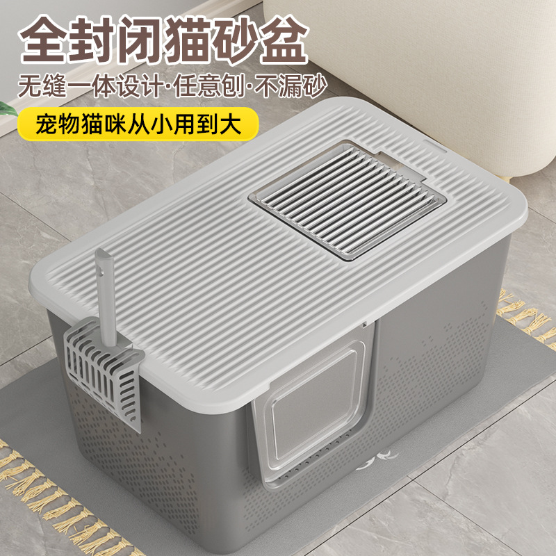 Kebesaran ruang mewah sepenuhnya tertutup kotak kotoran kucing lintas batas anti-percikan deodoran laci pabrik dalam stok penjualan langsung