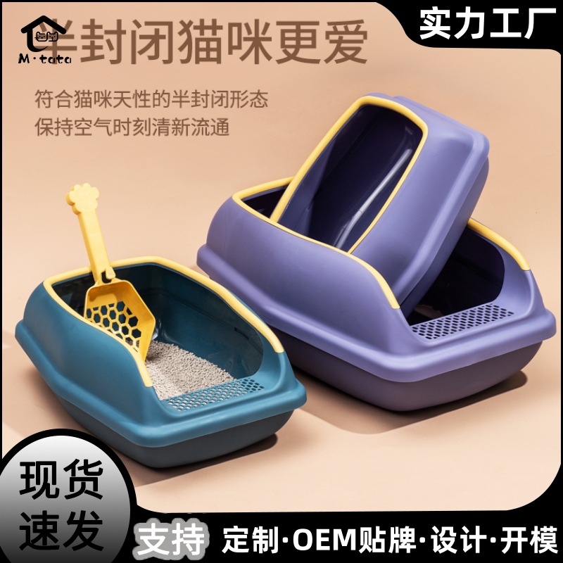 Grosir Pabrik kotak sampah kucing semi-tertutup perlengkapan pembersih kucing Terbuka toilet kucing semi-tertutup besar grosir