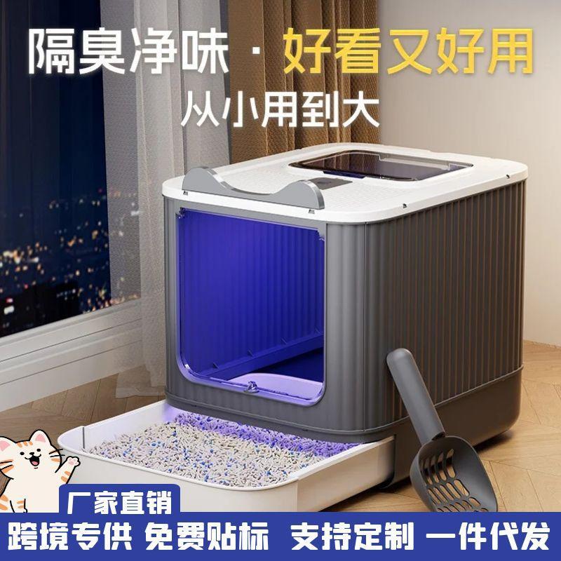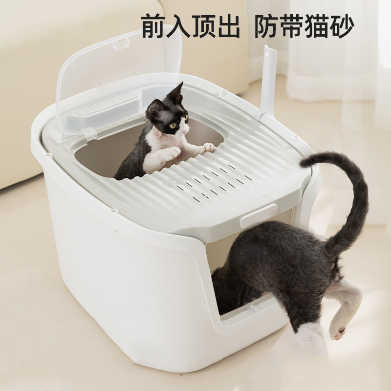 Amazon populer semi-tertutup kotak kotoran kucing besar kebesaran kotoran kucing sekop kucing toilet toko online agen grosir dan ekspor
