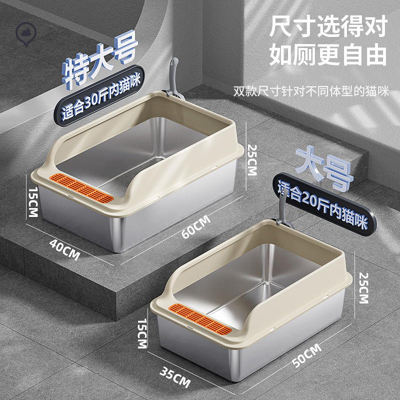 Baskom Kotoran Kucing Ekstra Tebal Baskom Kotoran Kucing Setengah Tertutup Toilet Kucing Anti Tercebur Luar Pagar Besar Ukuran Besar Terbuka Stainless Steel