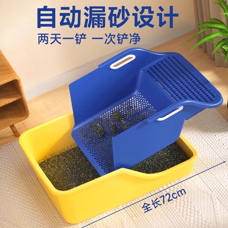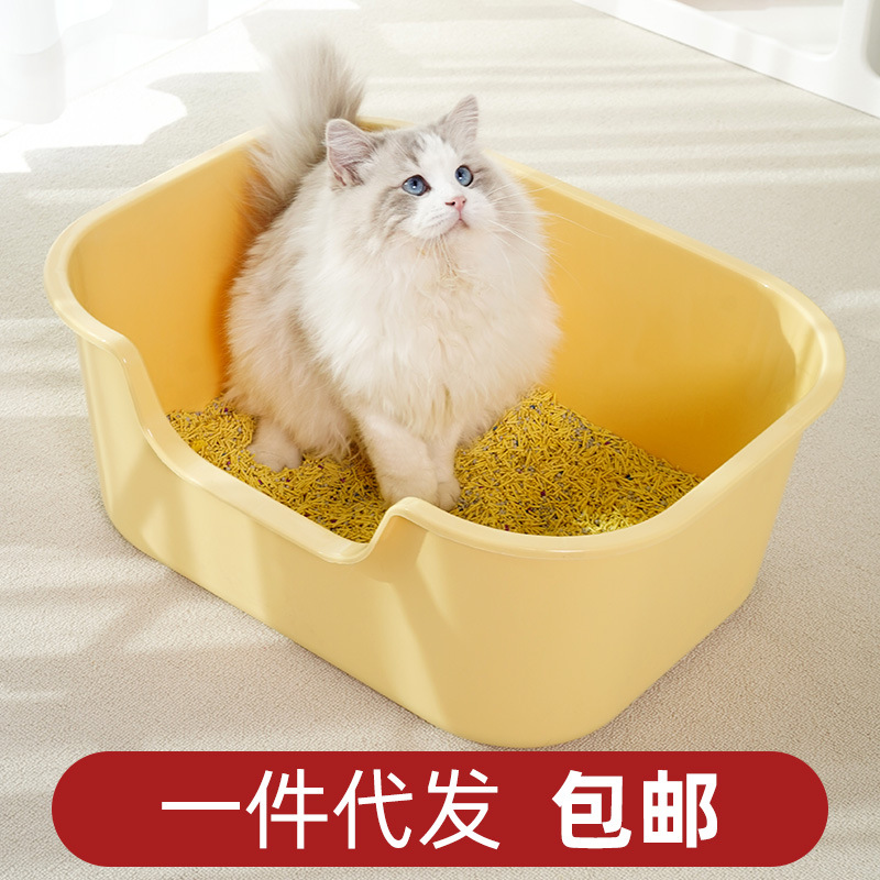 Baskom Kotoran Kucing Raksasa Lintas Batas Terbuka Satu Besar Toilet Kucing Setengah Tertutup Anti Pasir Anti Tercebur Baskom Kotoran Kucing