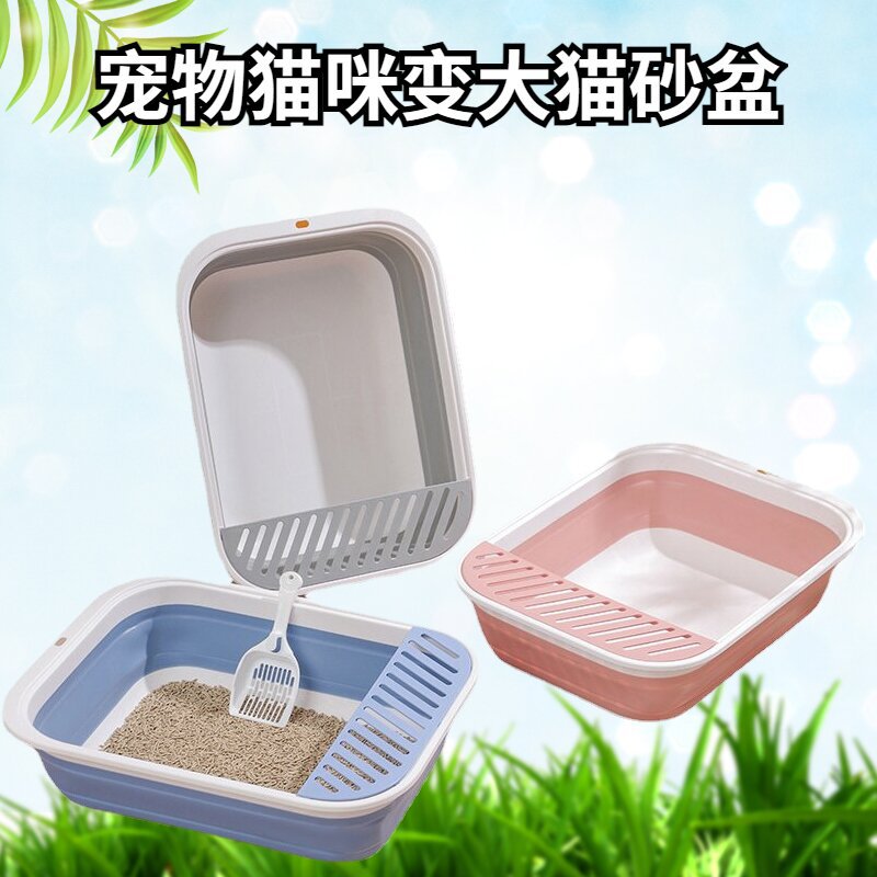Kotak sampah kucing hewan peliharaan baru, ukuran besar anti-cipratan Membersihkan perlengkapan kucing semi-tertutup lipat toilet kucing grosir