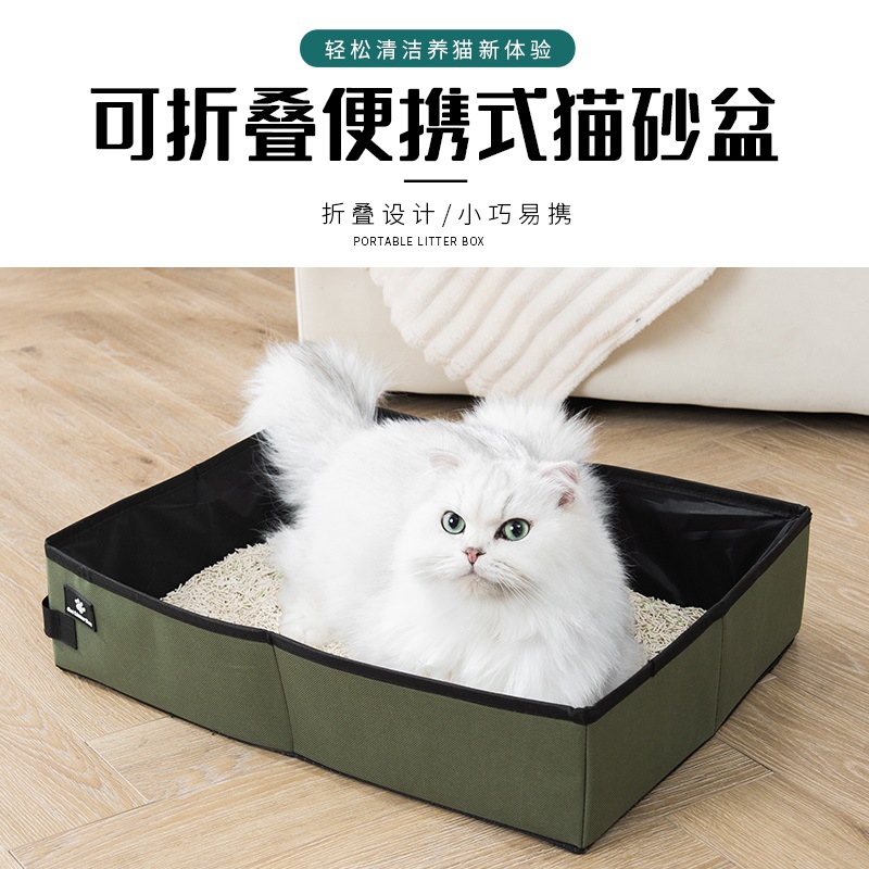 Kotak sampah kucing lipat portabel perjalanan, toilet kucing kain Oxford kotak sampah kucing terbuka tahan air baskom tahan aus