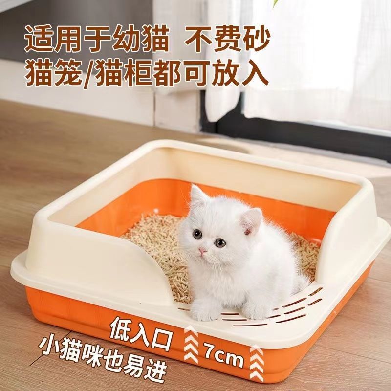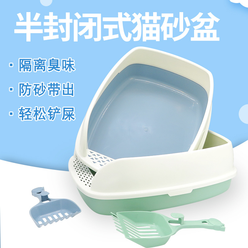 Nomor persediaan hewan peliharaan terbuka anti percikan kucing toilet ekstra besar kotak pasir kucing setengah tertutup grosir